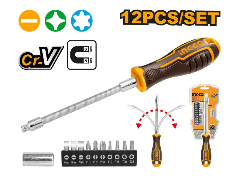 Ingco 12 Pcs Flexible Shaft Screwdriver Set AKSDFL1208