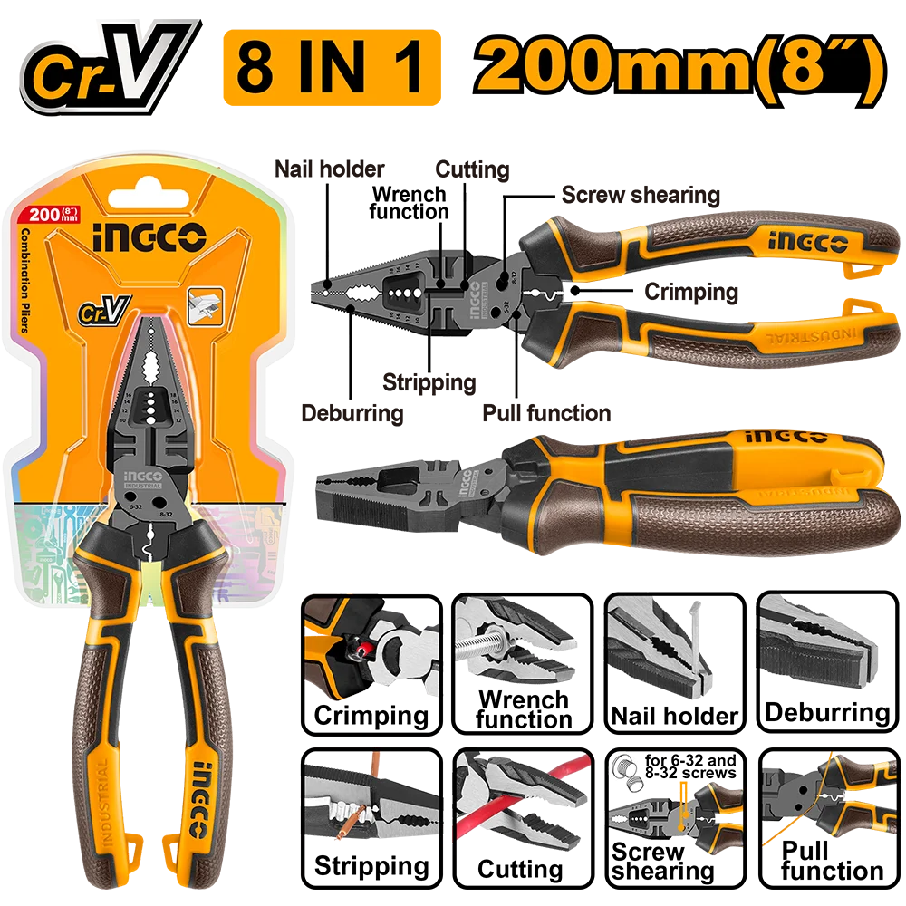 Ingco 8 in 1 Multi-function Combination Pliers HMFCP28200