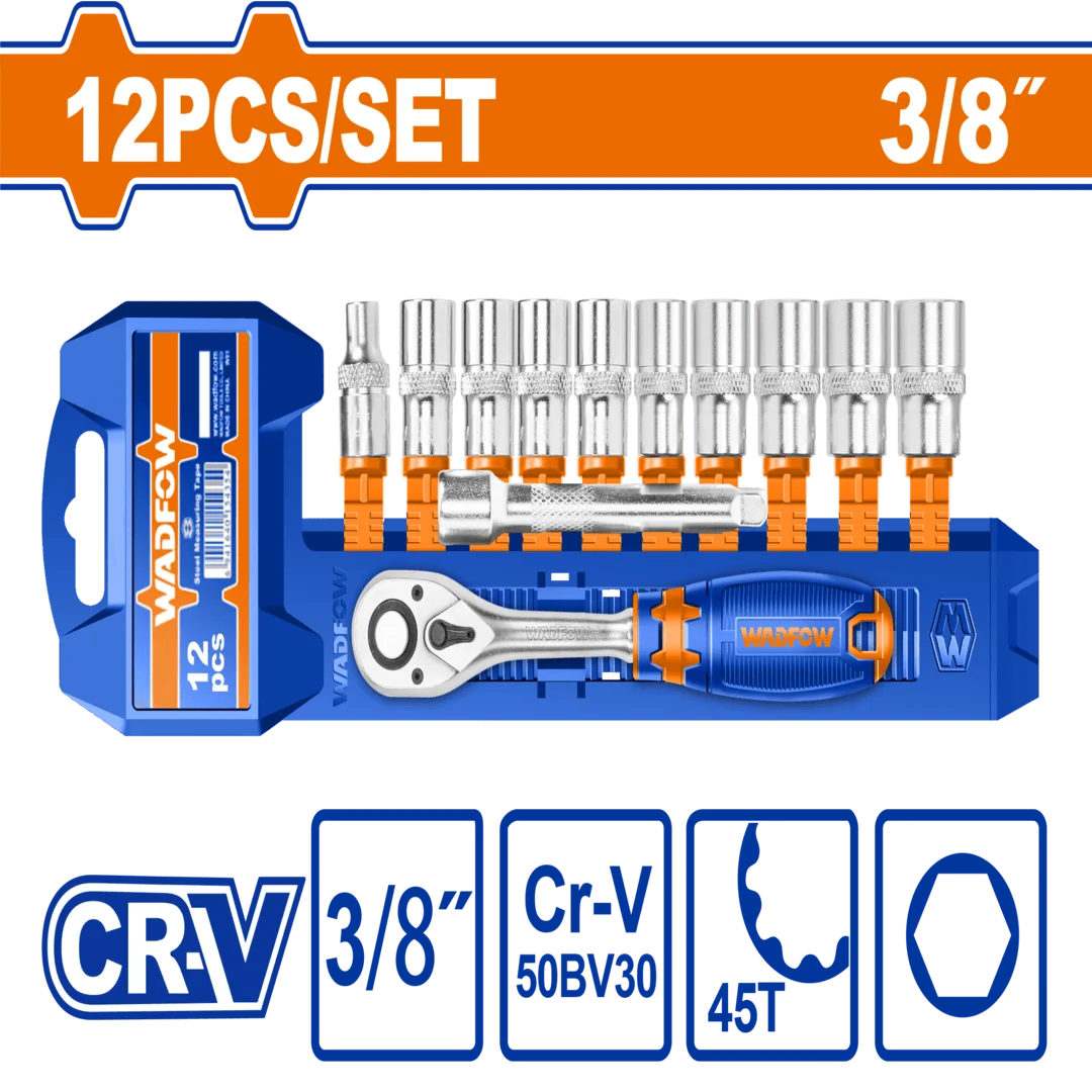 Wadfow 12 Pcs 3/8" Socket Set WST3212